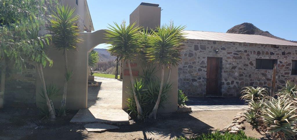 The communal lounge and kitchen is fully equipped with cooker plates (without oven), freezer, fridge, toaster, microwave oven and kettle. It has an indoor fireplace and a built in braai on the porch with an adjacent swimming pool which is surrounded by a magnificent view of the Swartberge.